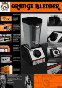 For this project, we selected Orange Amps, an iconic amplifier brand renowned among (bass) guitarists for its distinctive branding and product design. The goal was to capture the essence of Orange Amps and infuse it into the design of a kitchen blender.
