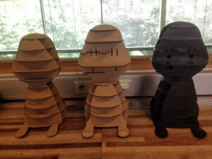 • Testing: Cardboard prototypes were tested in cardboard before creating an ABS laser-cut model. Servo motor modules were laser cut, 3D printed, and assembled, then wired and tested with a Raspberry Pi.