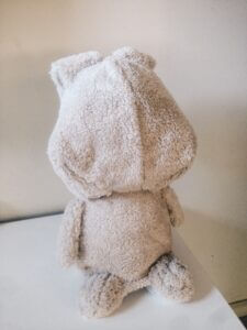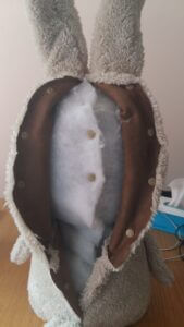 • Finishing: The internal stuffing and outer skin were knitted, and a custom jacket was created for Lou.